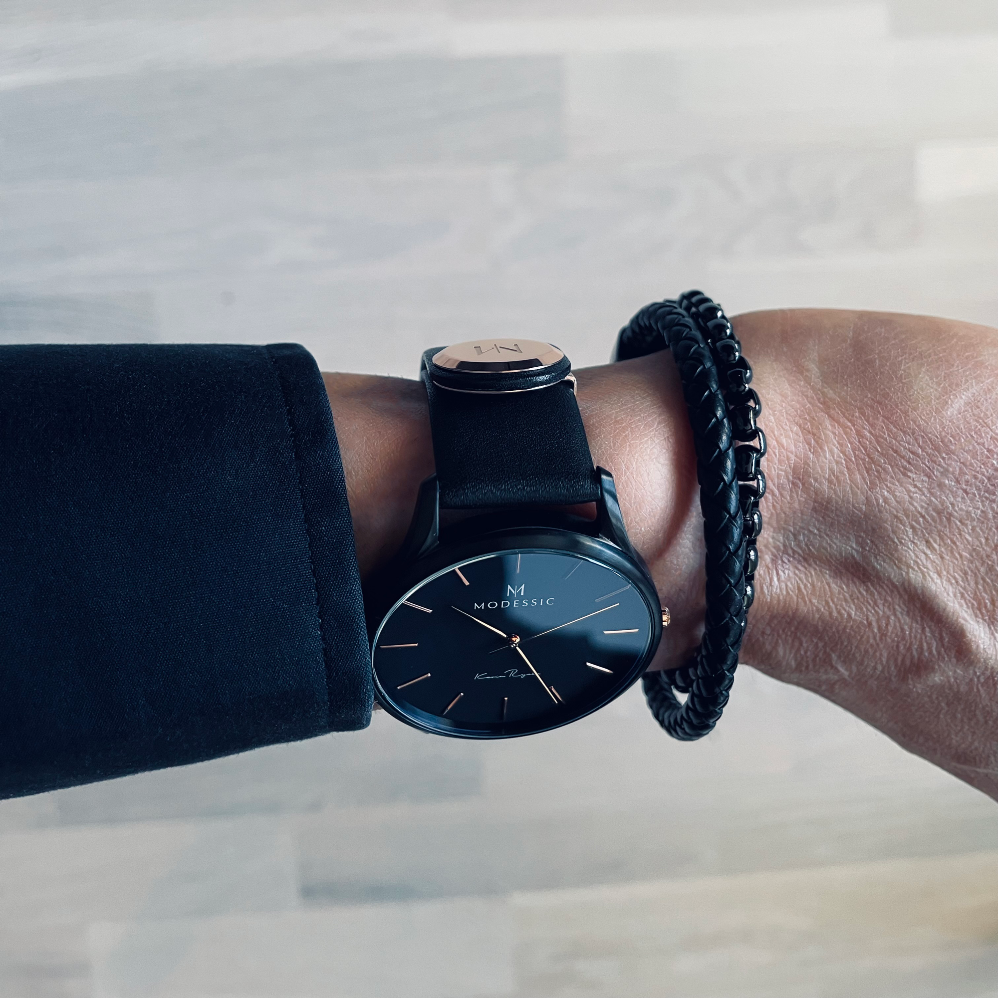 Midnight Story is a bold classic watch with a serious style. The perfect complement to an all-black outfit.